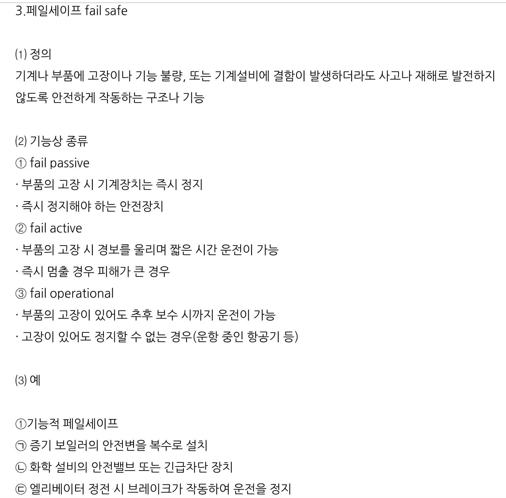 Fail Passive 기계고장 즉시 장비가 멈춤, 부품이 고장 나면 통상기계는 정지하는 방향으로 이동