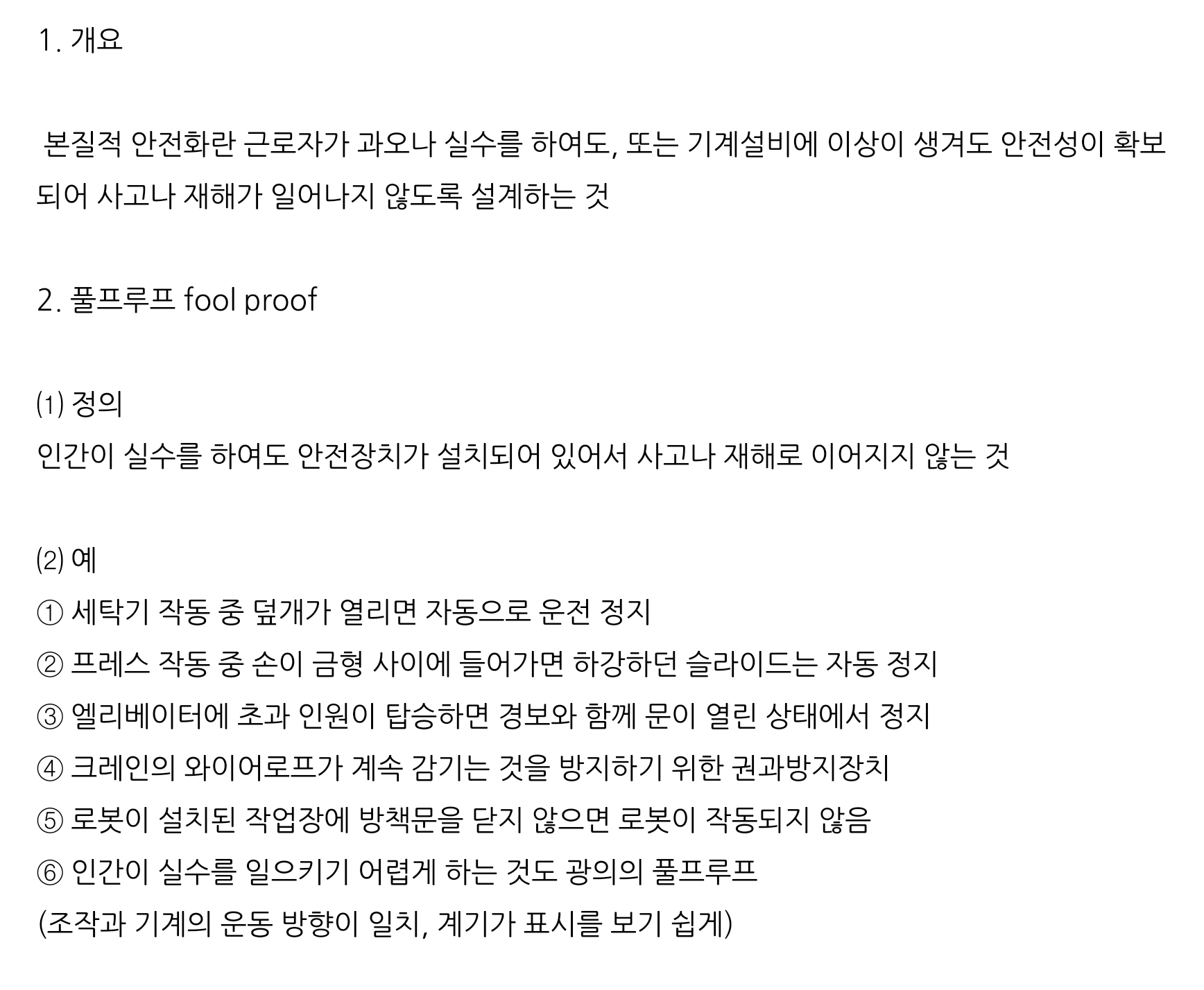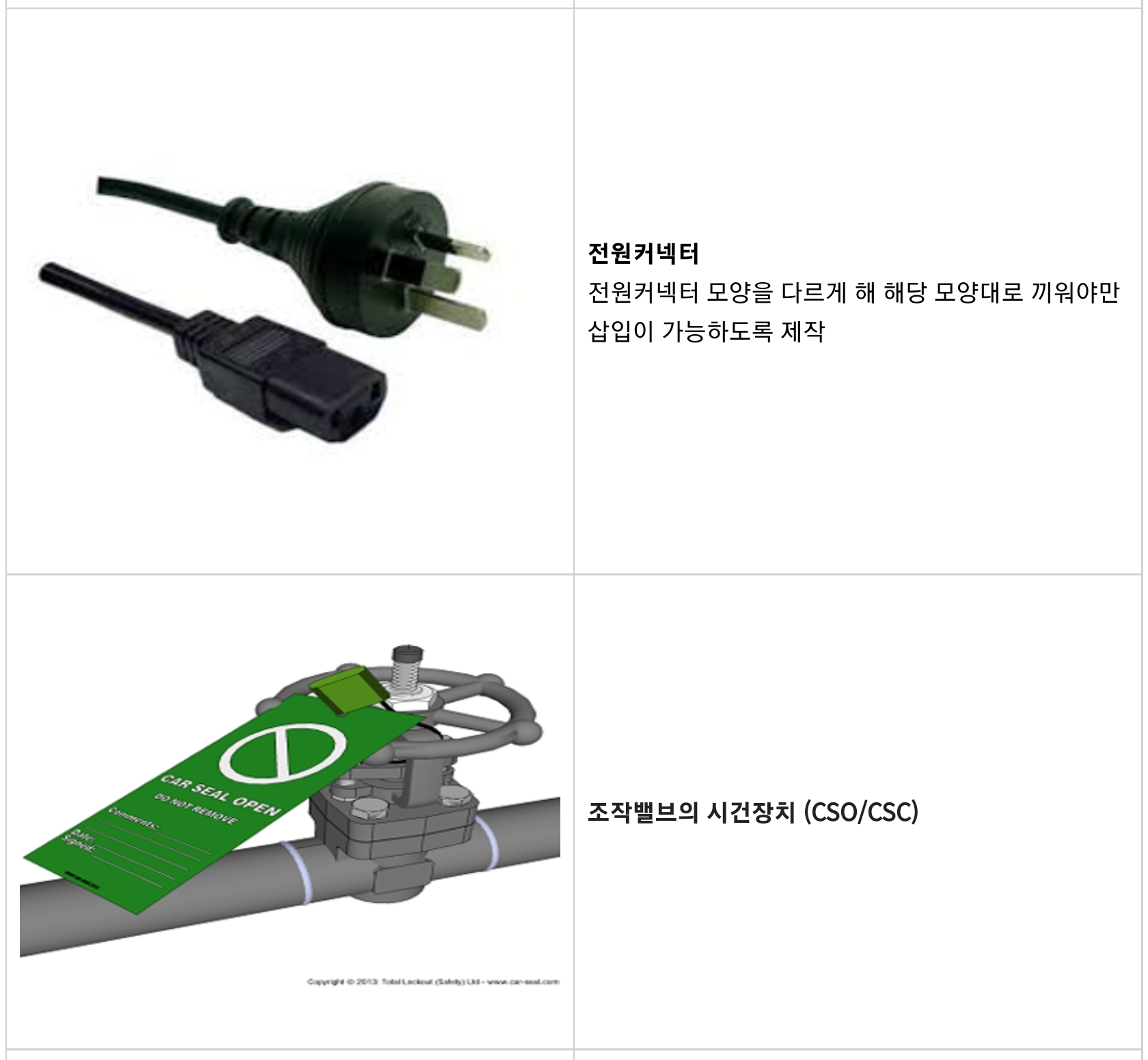 • 설계방법 : 격리, 기계화, LOCK 등 • 문제점 : 설비의 수리 작업 중 Fool Proof 해제할 경우 위험성이 상존함