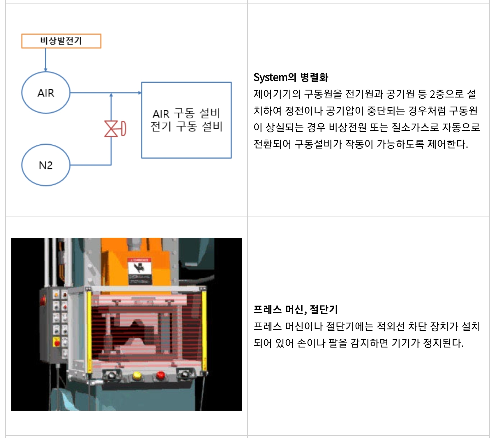 Fail Active 기계고장 시 경보가 울리며 잠시 작동 가능, 부품이 고장나면 기계는 경보를 울리는 가운데 짧은 시간 동안의 운전이 가능