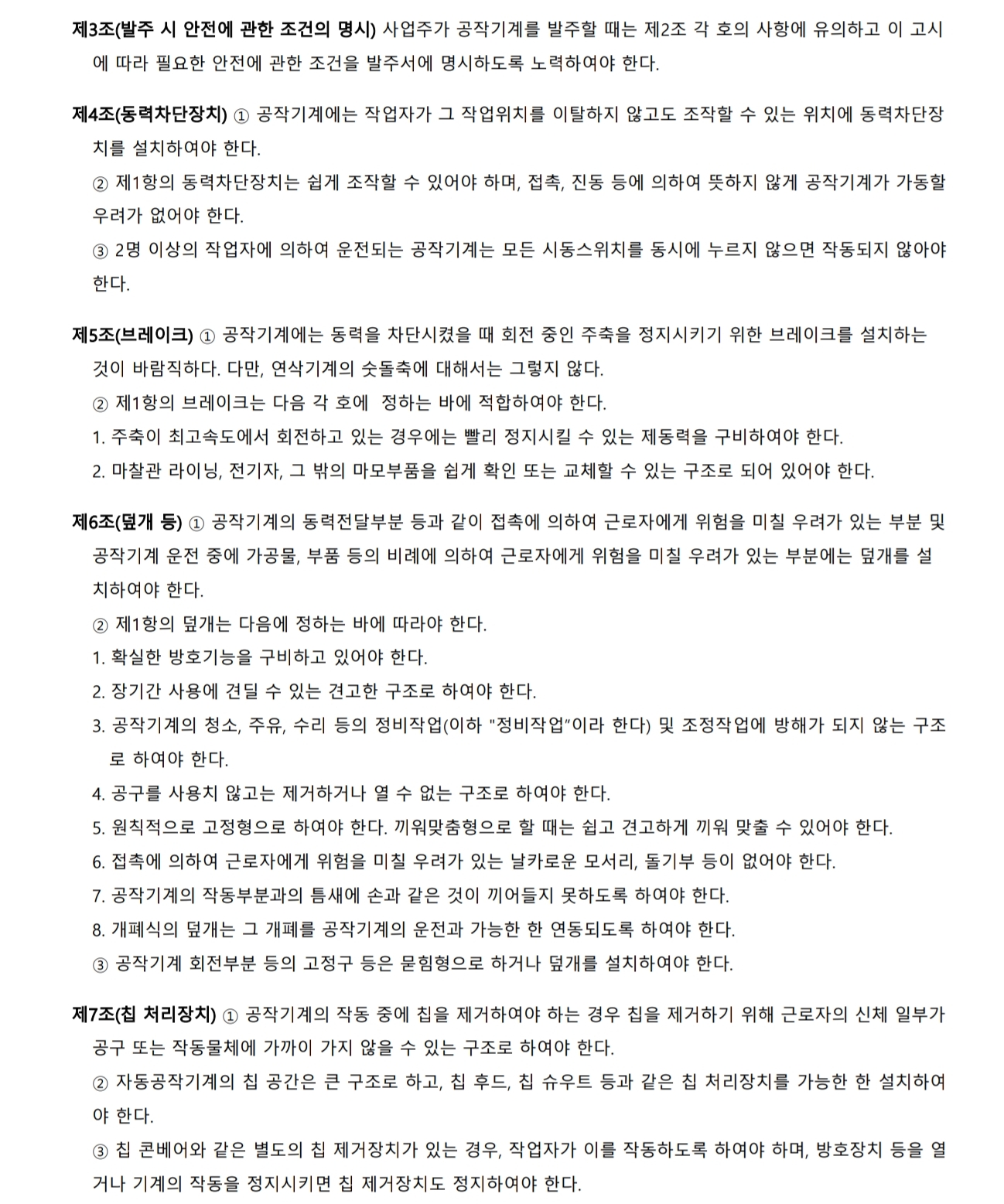 제3조(발주 시 안전에 관한 조건의 명시) 사업주가 공작기계를 발주할 때는 제2조 각 호의 사항에 유의하고 이 고시