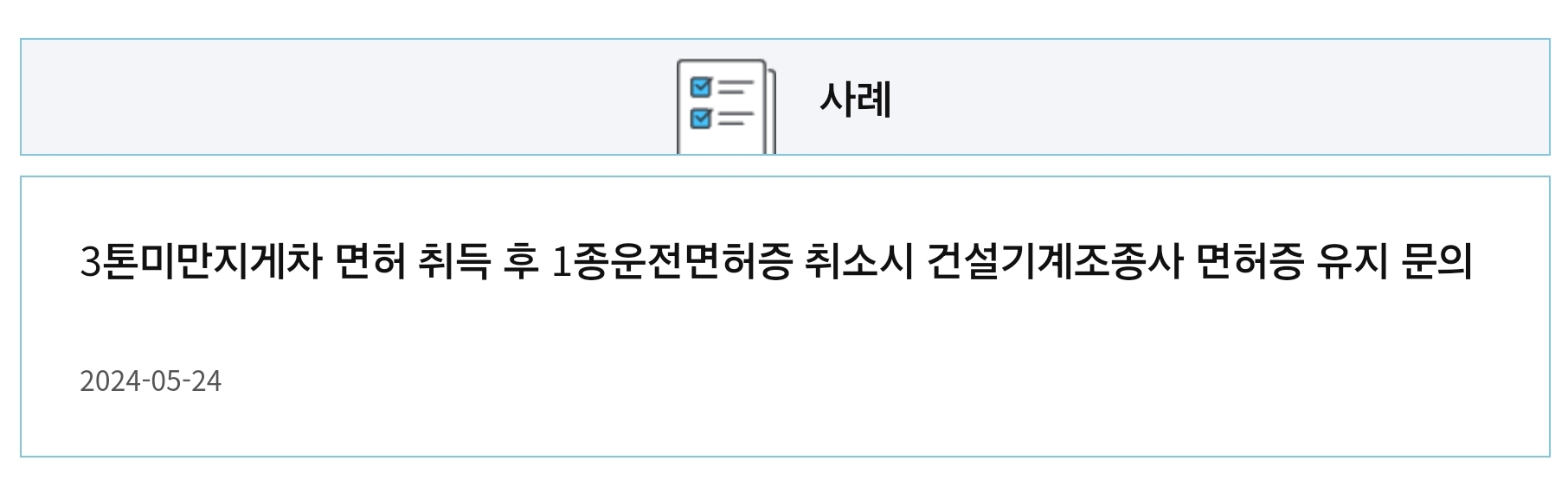 3톤미만 지게차 면허 취득 후 1종운전면허증 취소시 건설기계조종사 면허증 유지 문의