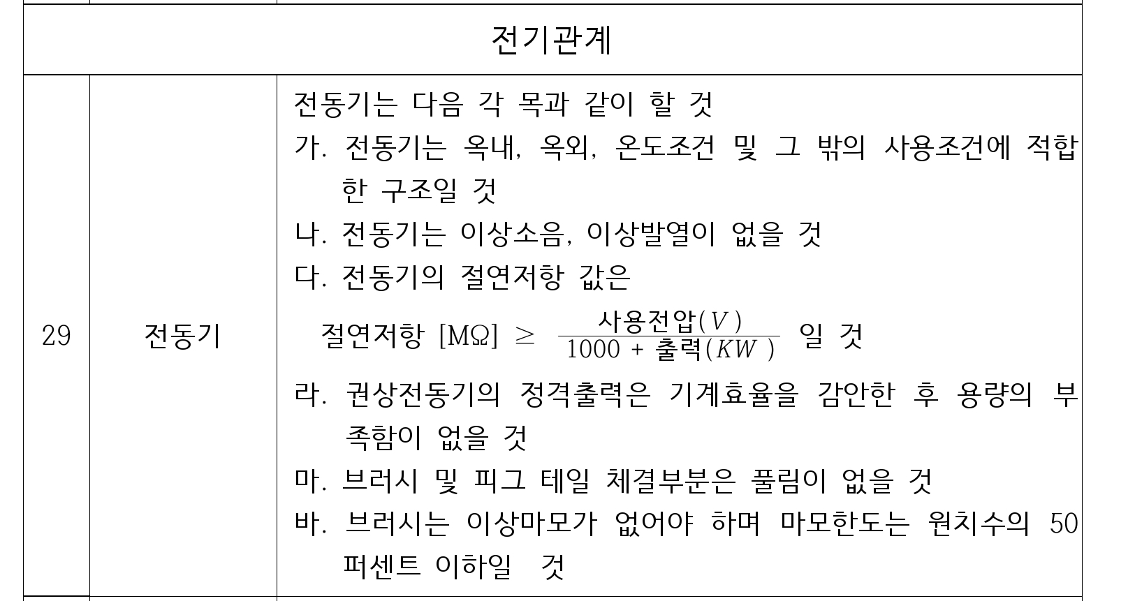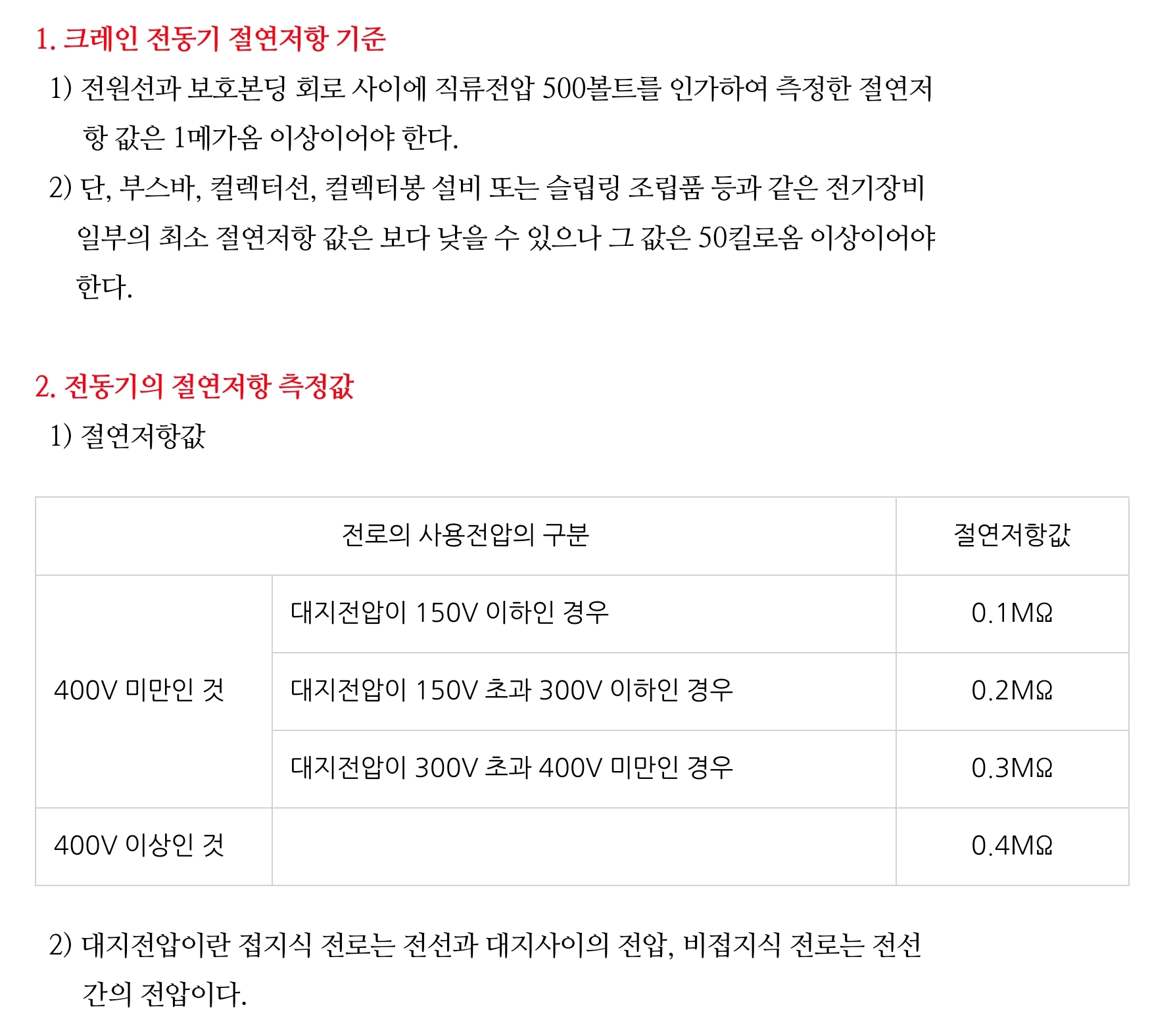 1) 전동기의 절연저항 기준 값