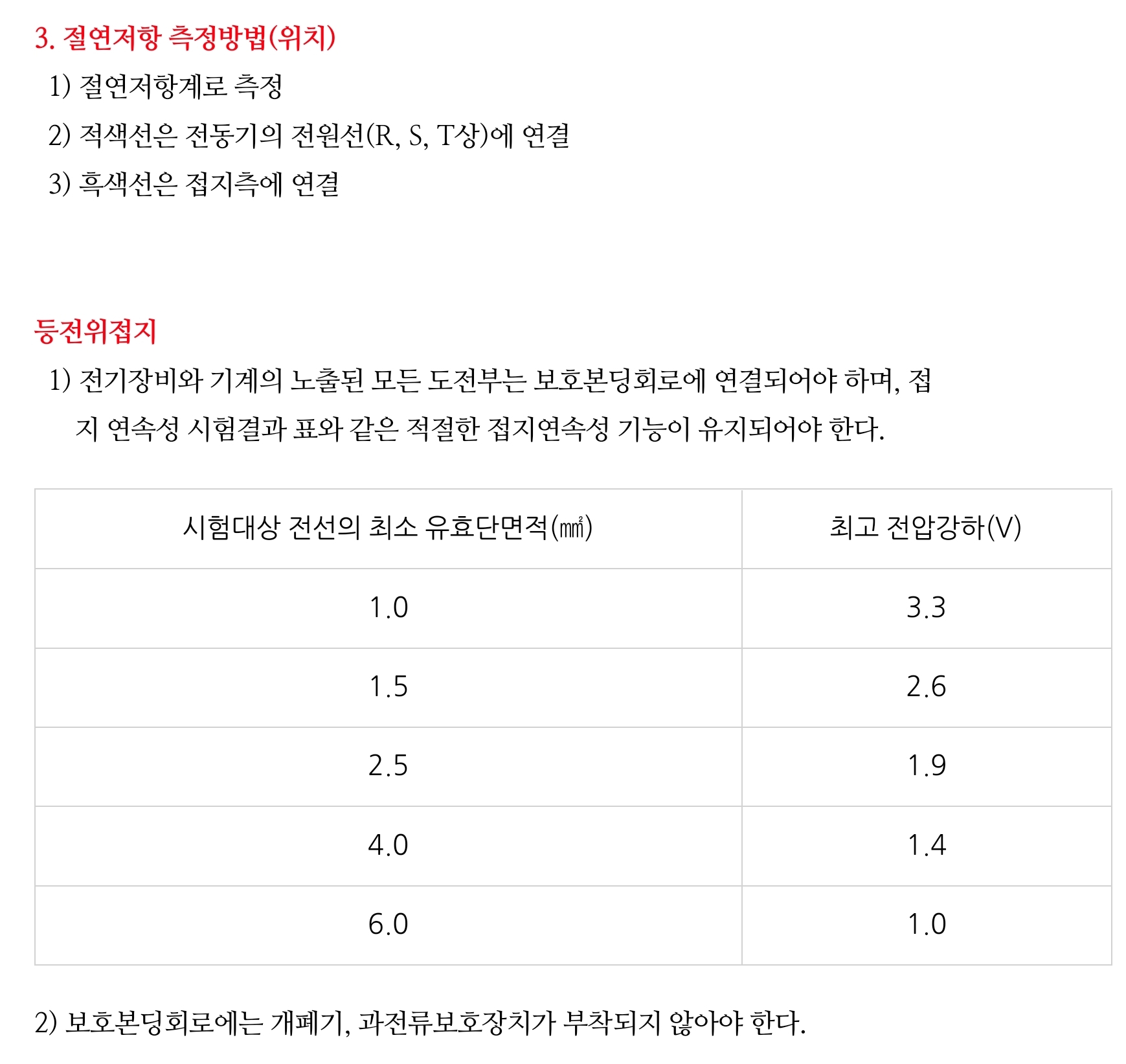 2) 절연저항 측정위치(절연저항 측정기의 적색선 접속위치 및 흑색선 접속위치)