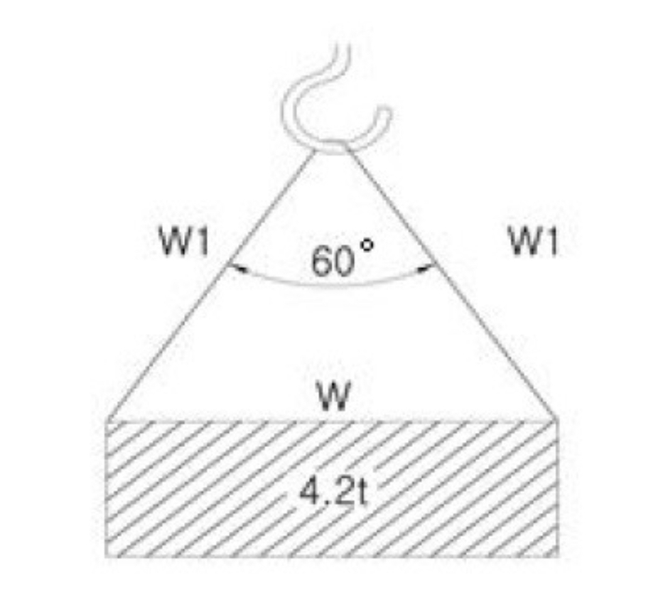 줄걸이용 와이어로프 한 줄에 걸리는 장력(W1)을 구하고