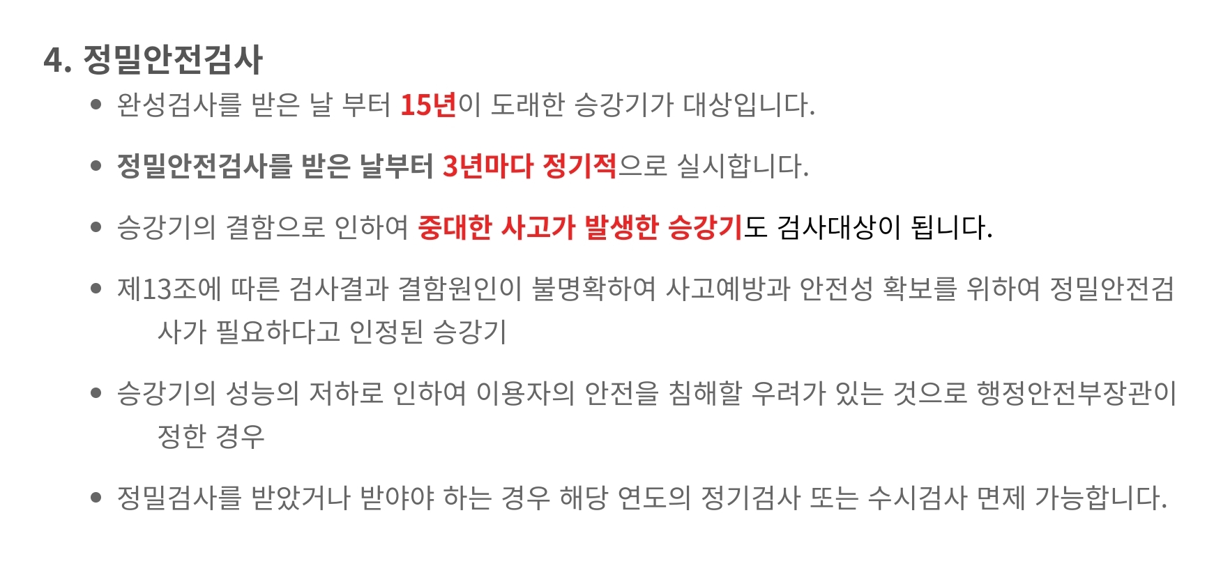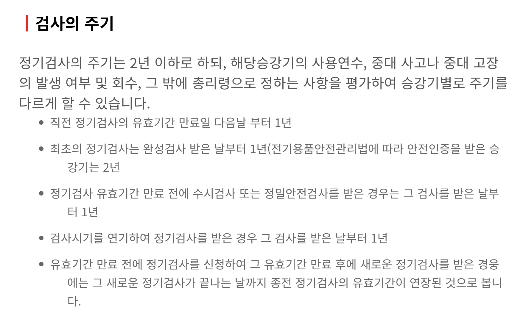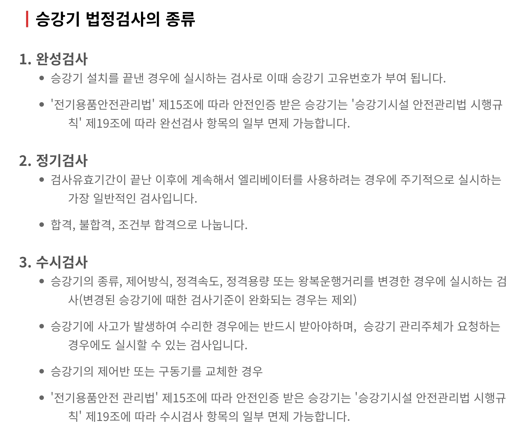 승강기 검사의 종류 4가지에 대하여 설명하시오.(2019년 1월 기준)