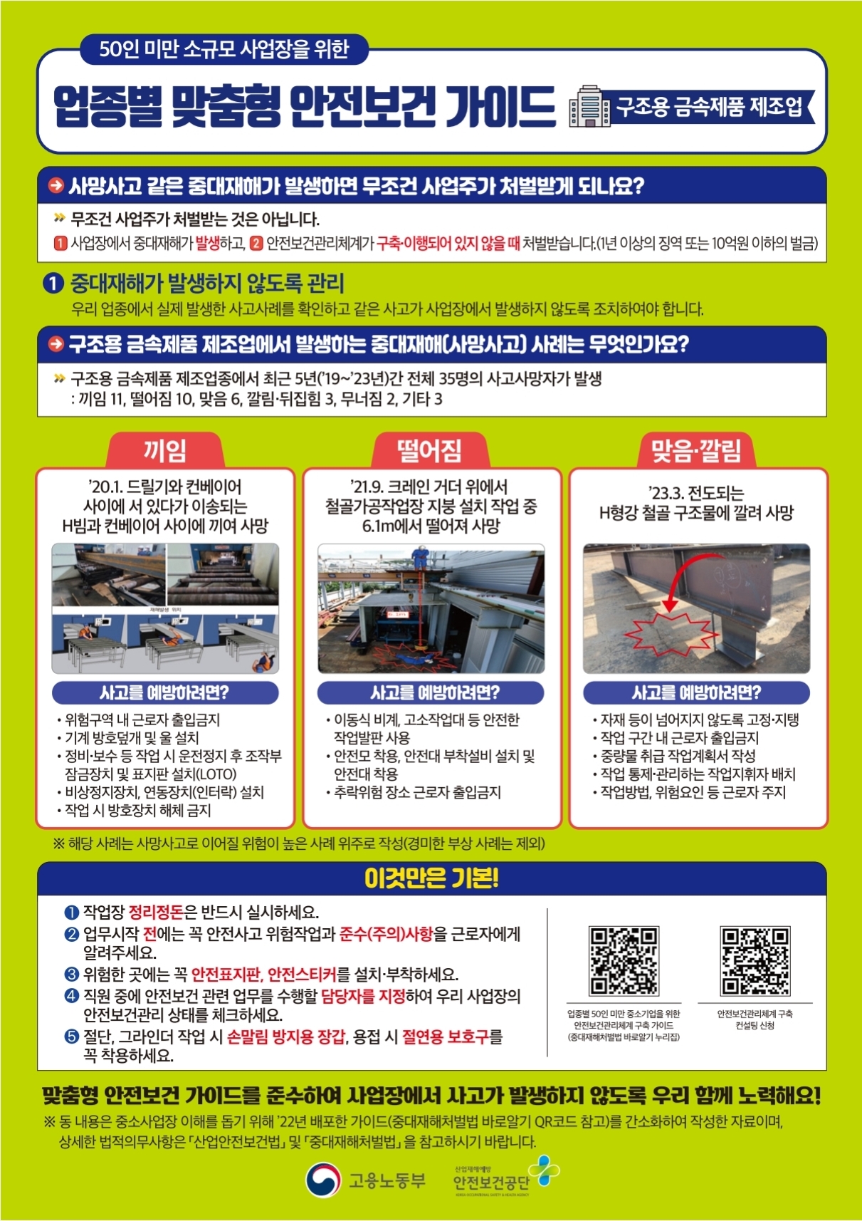 [보도자료] 250723 고용노동부 장관 "안전한 일터 프로젝트" 본격 착수, 중대재해 근절을 위해 총력 (0) 2025.08.06 [보도자료] 250701 2025년 하반기부터 이렇게 달라집니다(고용노동부) (2) 2025.08.06 [교육자료] 250601 2025년 안전보건교육 안내서 (4) 2025.07.25 [교육자료] 중대재해처벌법 해설 - 중대시민재해(시설물·공중교통수단) (11) 2025.07.20 [교육자료] 호우ㆍ태풍 시 사업장 안전관리 이행수칙 가이드 리플렛 (0) 2025.07.20