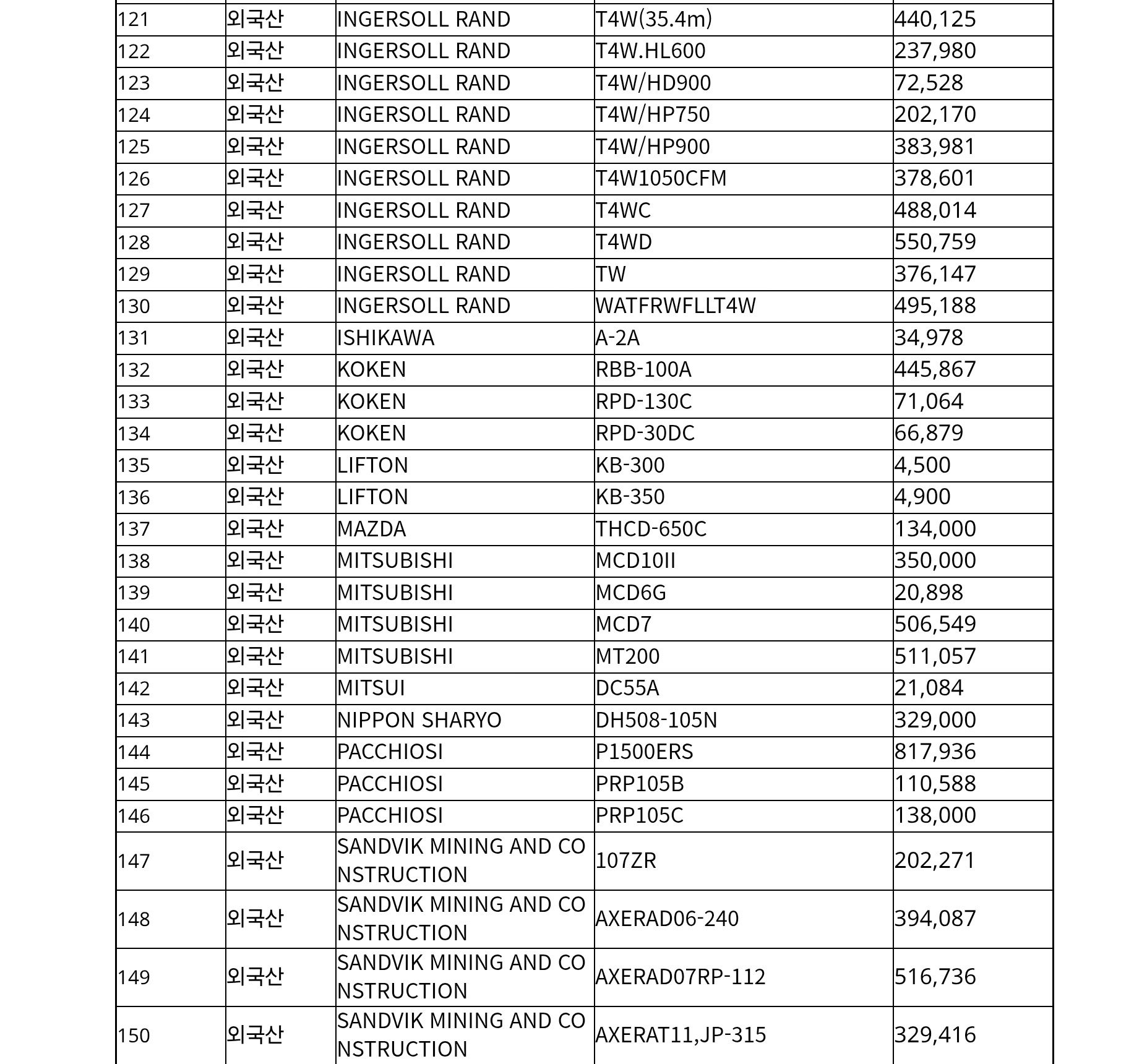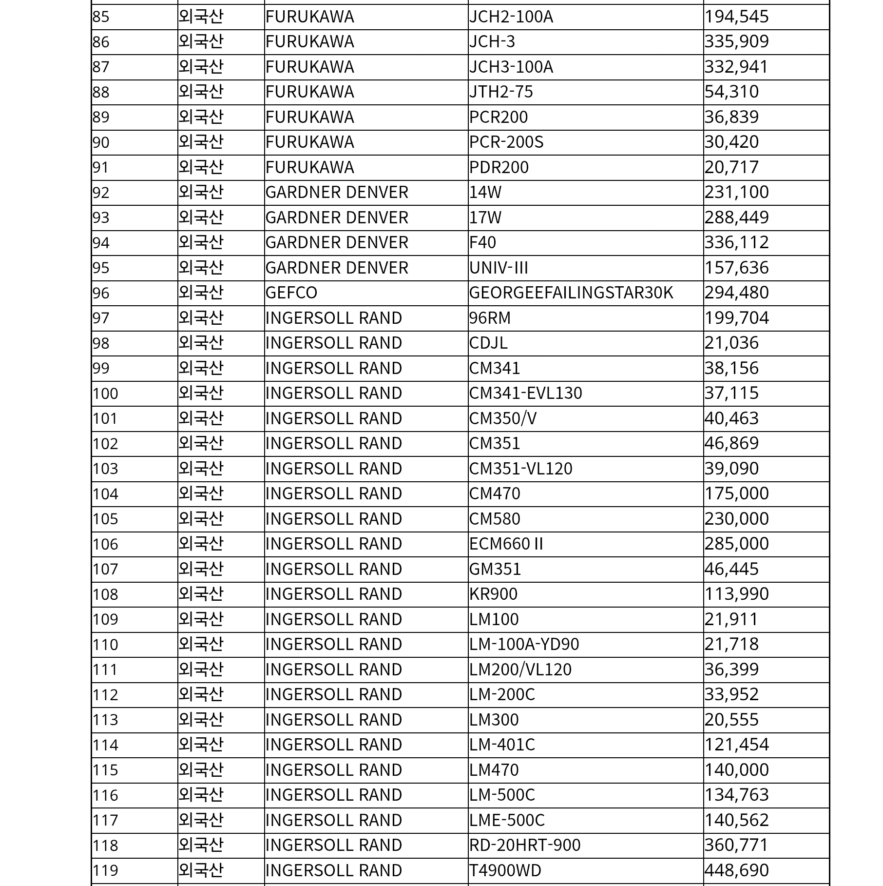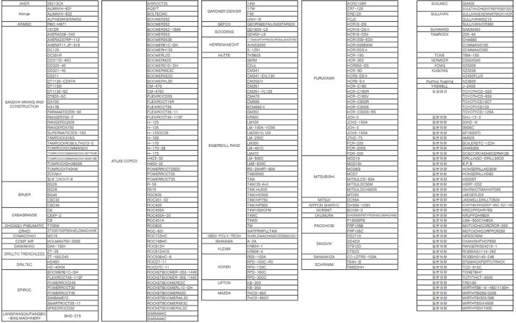 대우 : 600콤프, DR3600, HCR12DS-II, HCR9DS-II, HCR9S-II, PAC350S-1,PAC6755, PAC850S