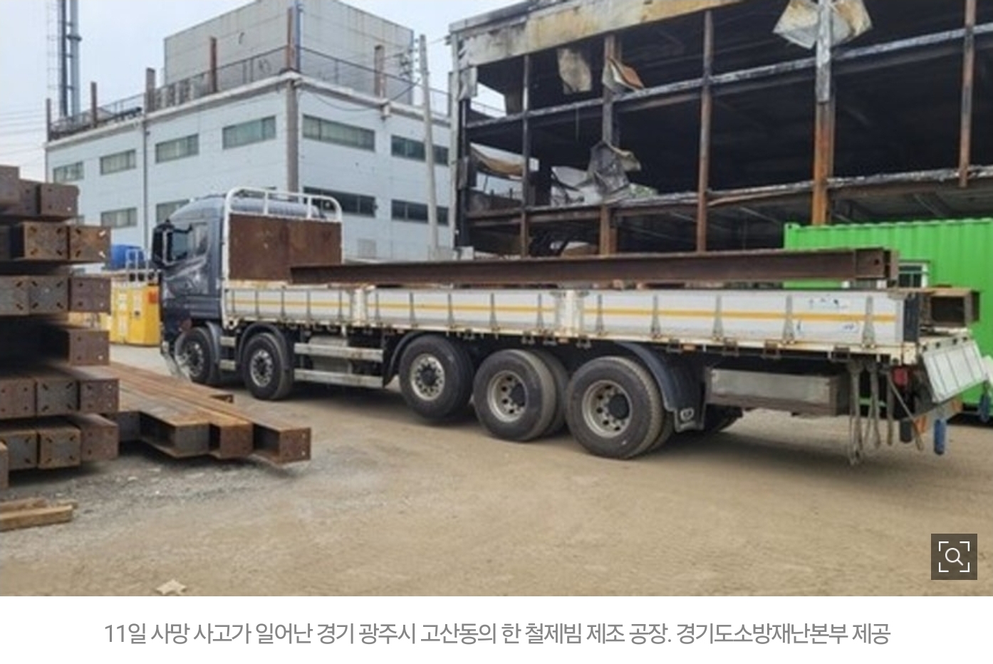 ○ 사고경위 : 폐업한 가구공장 철거 작업 현장에서 지게차를 이용해 해체한 철제빔을 화물자동차에 싣는 작업 중 철제빔이 화물자동차에서 떨어져 차량 주변에 서 있던 재해자를 덮치면서 깔려 사망