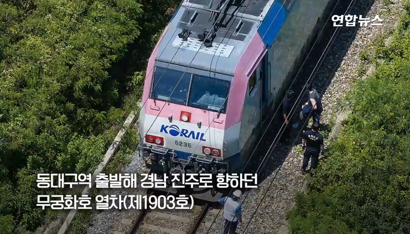 ○ 사고경위 : 경부선 무궁화열차가 동대구역을 출발해 경남 진주로 향하던 부산 방향 356.4㎞ 지점에서 무궁화호 열차(제1903호)가 선로 인근 수해지역 비탈면 옹벽 구조물의 안전 점검 등을 위해 이동하던 작업자 7명을