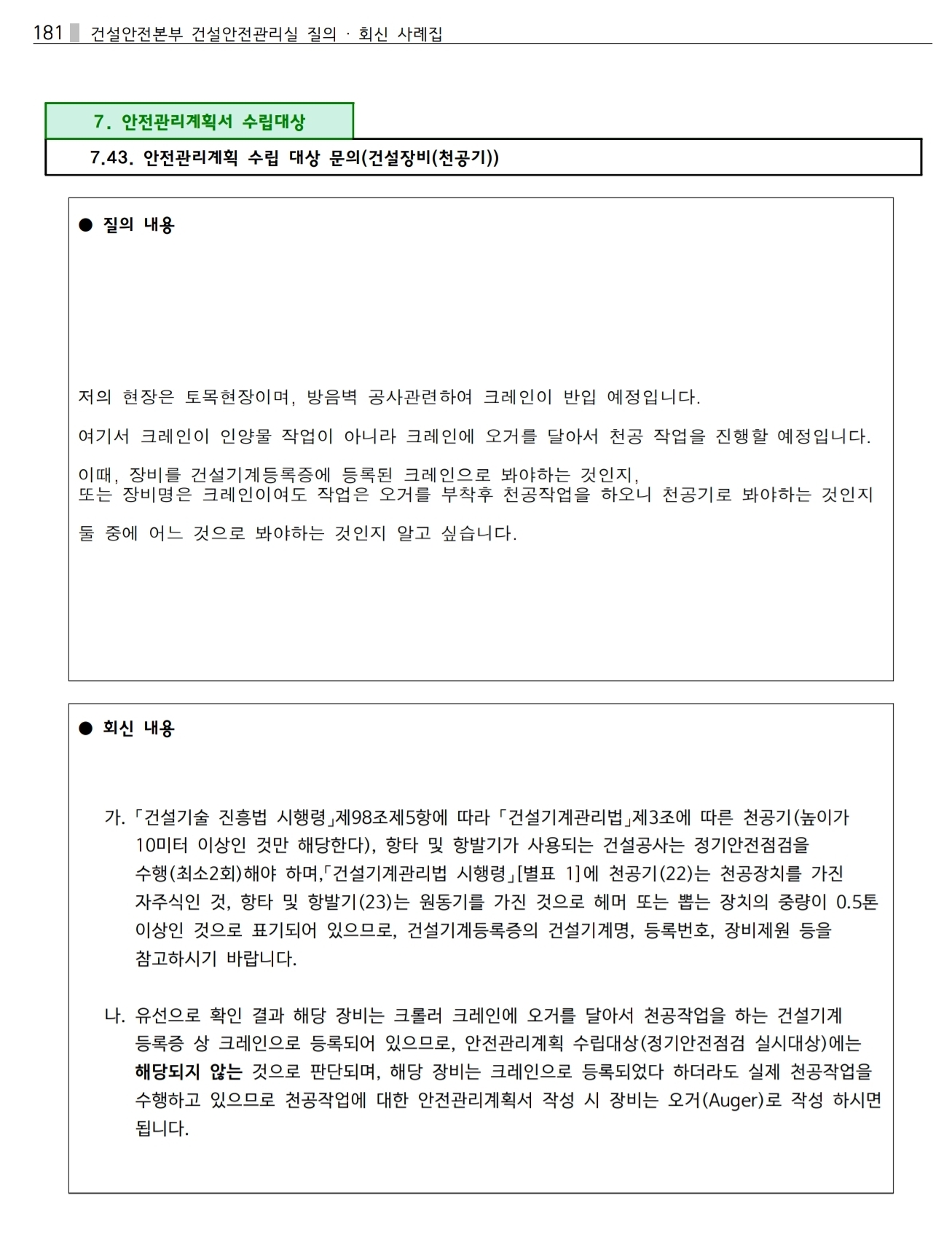 7.43. 안전관리계획 수립 대상 문의(건설장비(천공기))