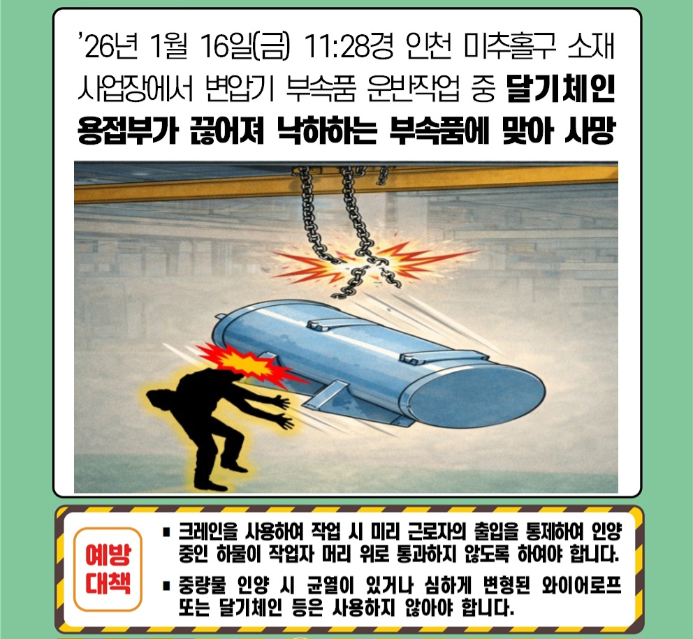 [사고사례] 2026년 1월 중대재해 사례 (산재 사망 노동자)건설장비 사고사례/건설장비 사고사례집 2026. 1. 5. 20:01728x90반응형