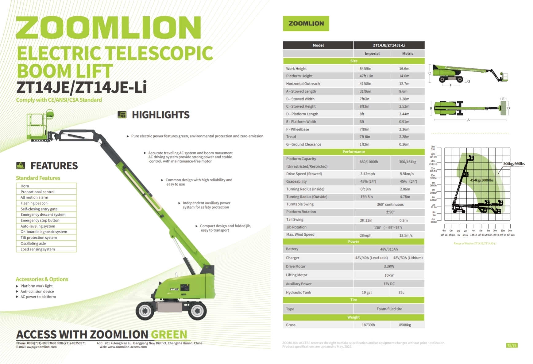 Zoomlion ZT14JE-Li Telescopic Boom Lift