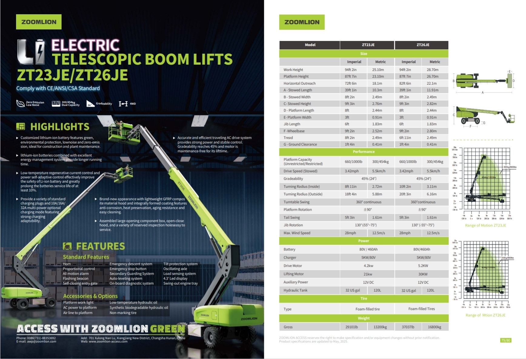 Zoomlion ZT23JE ZT26JE Telescopic Boom Lift