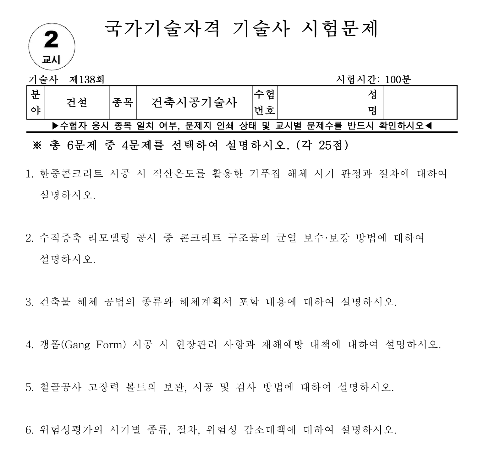 4. 건설기술인력 고령화에 따른 문제점과 개선방안에 대하여 설명하시오.