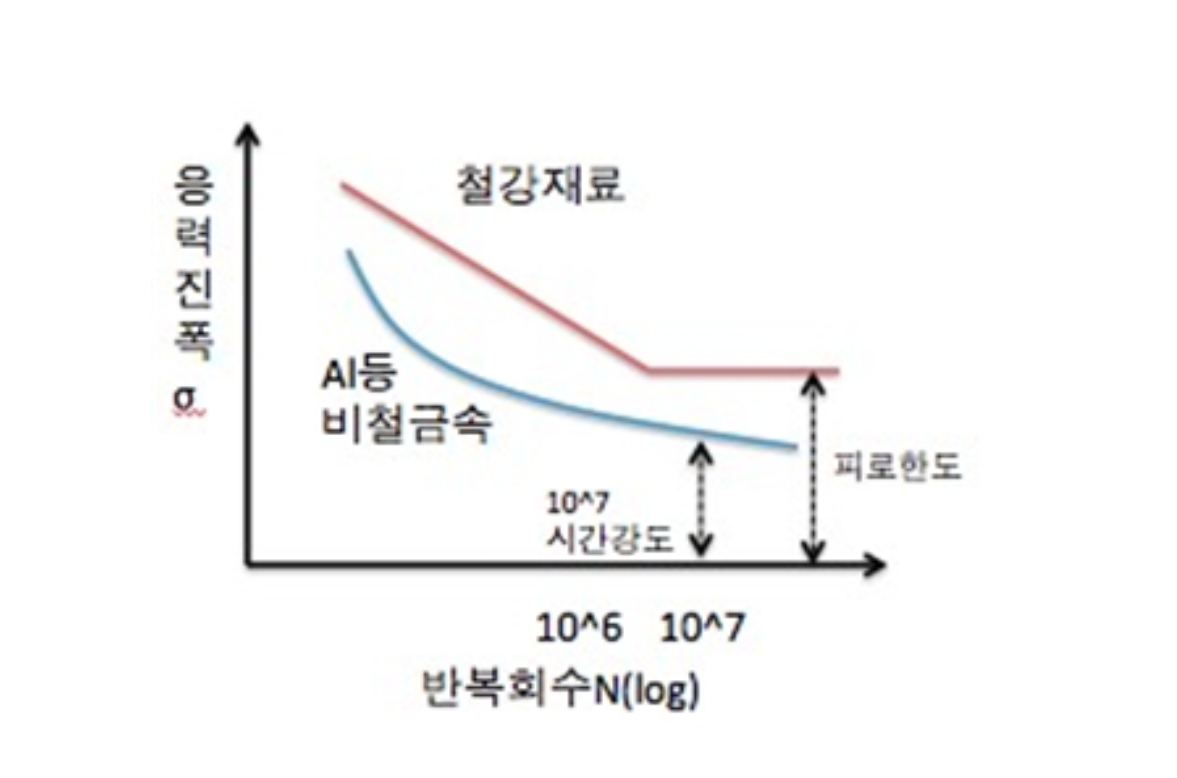 1) 알루미늄과 같은 비철금속은 S-N곡선에서 철강재와 같은 수평구역이 나타나지 않는다.