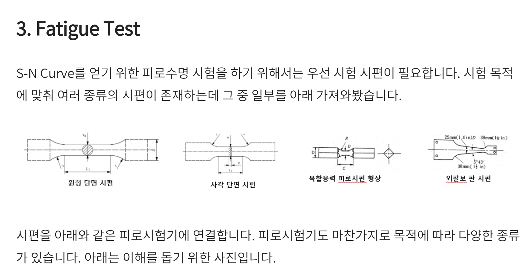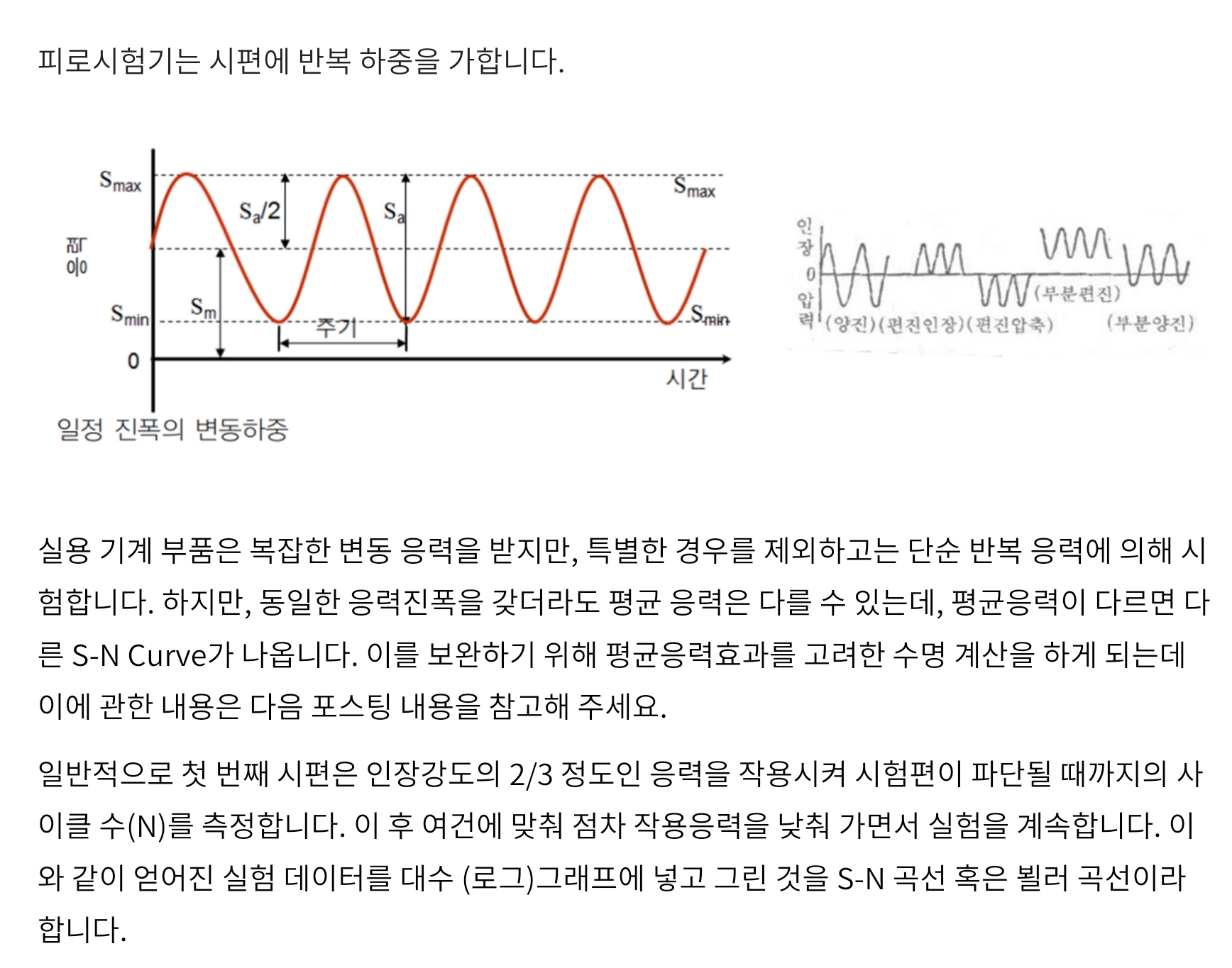 2) 일반적으로 금속재료의 S-N 곡선은 응력진폭이 작을수록 파괴까지의 반복횟수는 증가한다.