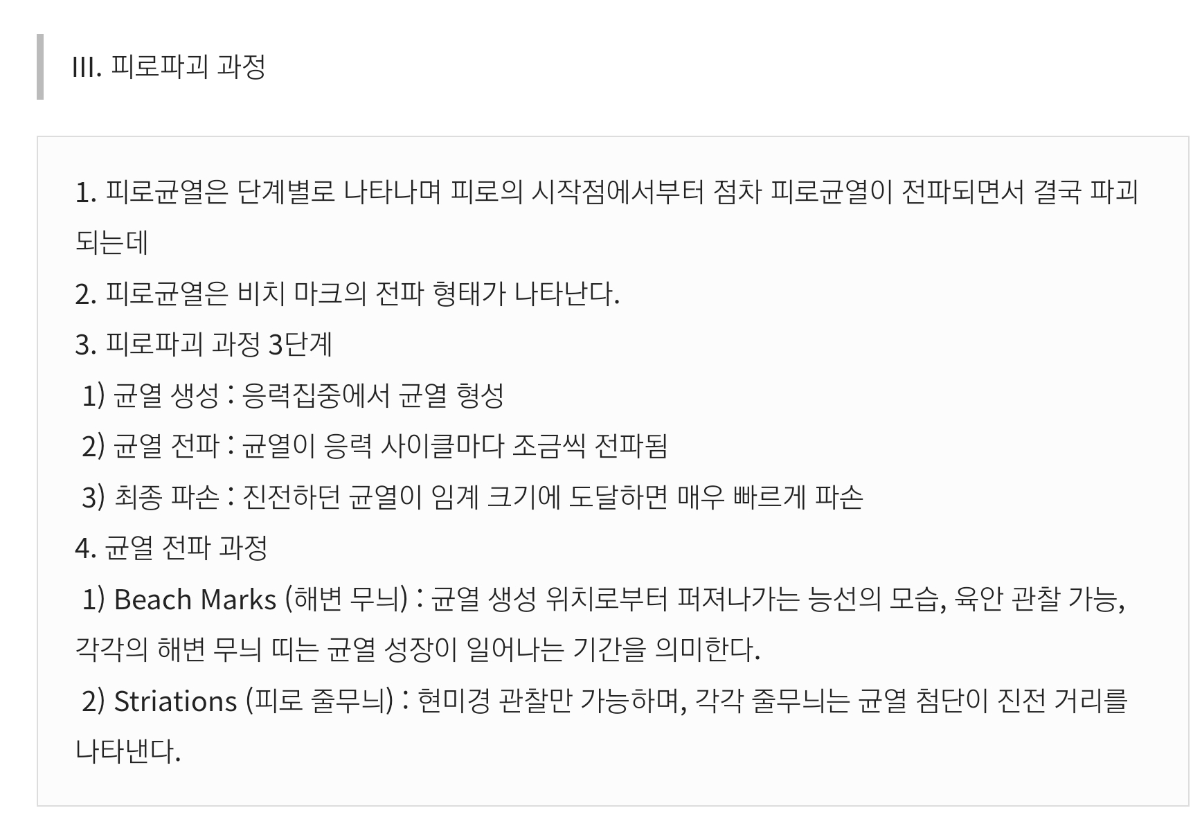 2) 계속적인 동하중을 받을 경우 정하중 조건에서 받을 수 있는 하중보다 훨씬 더 작은 하중에서 예고없이 파괴된다.