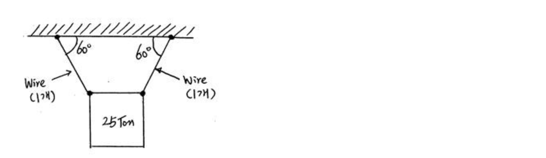 4. 두 개의 WIRE(혹은 환봉)로 지탱되는 하중이 25ton이다(자중무시).